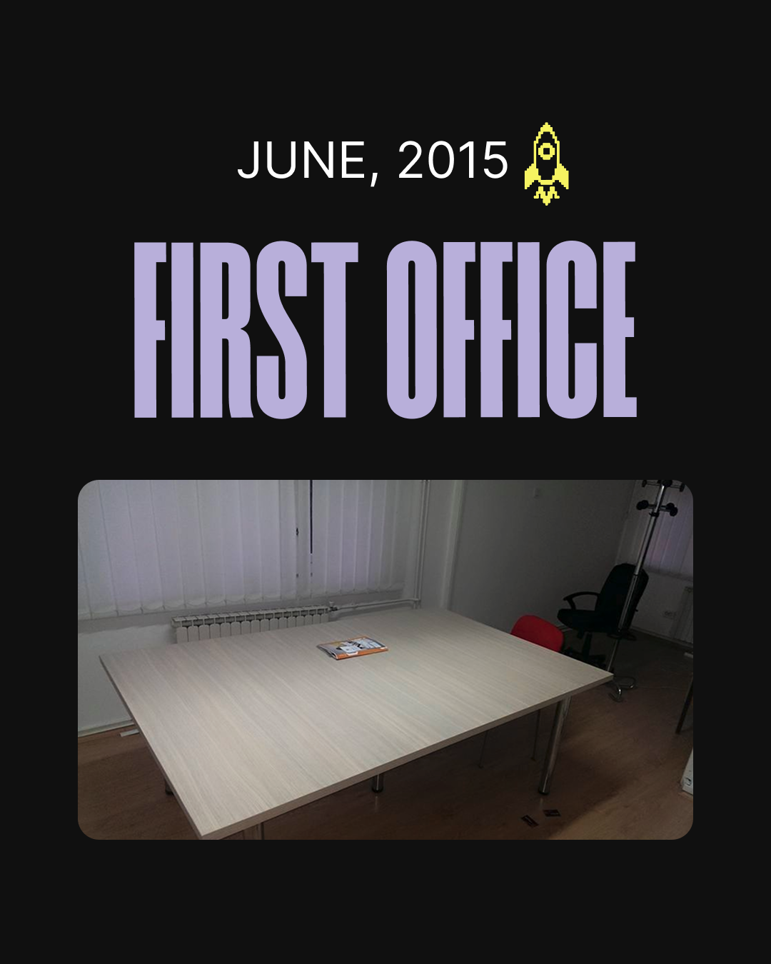 Our journey began with firsts that defined our identity. Our very first logo dates back to May 2015, created by our founder, Ivan, and designed by our lead designer, Ognen. Both were just 23 years old at the time. Our first team was the believers who lit the spark that started it all, and 10 years later, we are still burning bright. Our first office was humble, with bare walls, shaky tables, and big dreams, but it was worth every moment.