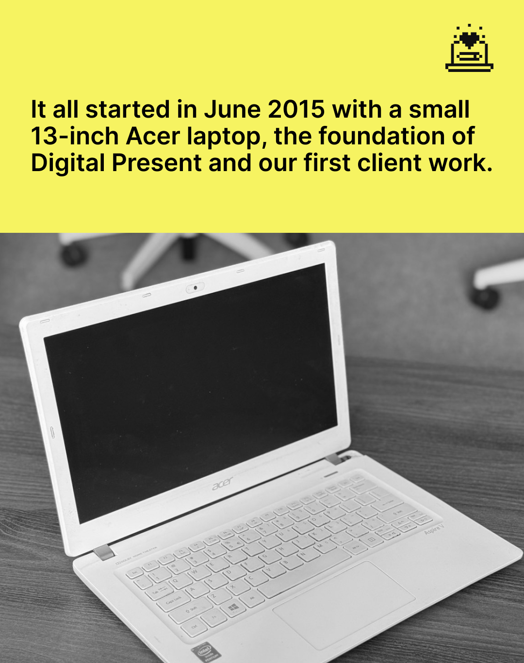 Some firsts were small but meaningful, like our first laptop, which was small but powerful enough to kickstart our vision, our first espresso cup from Gradska Kafeana Skopski Merak, and the very first coffee machine that joined our studio, fueling the long hours and big ideas that built our company. Even our first Facebook post is unforgettable, as we shot a commercial that captured the start of our journey online. These firsts remind us of where we started and inspire us as we look forward to the next decade.